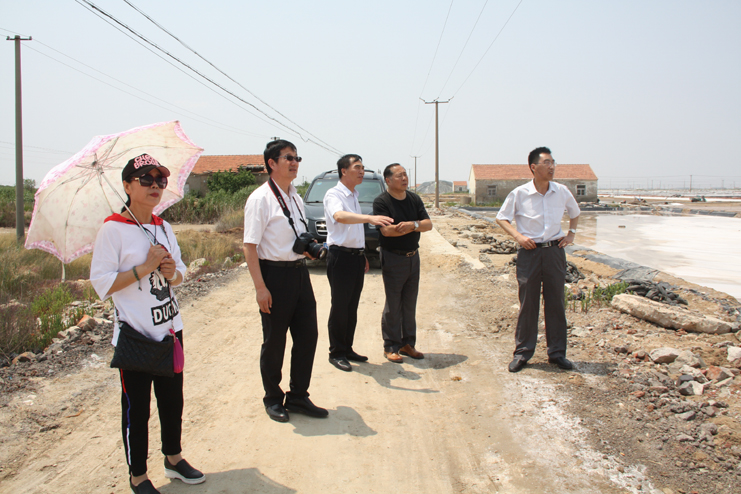 一行人先后到原民國時期公濟制鹽公司的辦公署遺址、早期產鹽平面灘和日曬制鹽公司的扒鹽現場參觀采風。具有百年歷史的原公濟制鹽公司辦公署是灌西鹽場地區現存最古老的建筑物,也是整個淮鹽地區僅有的遺跡,隨著歷史的變遷,房屋雖幾經改建,破損嚴重,但主體結構仍然保留了下來,是重要的淮鹽文化物證。位于鈣液復曬區的早期產鹽平面灘,是前不久為央視攝制組拍攝淮鹽發展歷史而改造的制鹽平面灘,復制了過去的制鹽工藝及生產過程,在平面灘上,大家拿起收鹽刮板,挑起鹽筐,手推小鹽車,一一體驗一下過去鹽工們的勞動方式。在新河制鹽分公司十班的扒鹽現場,機聲隆隆,潔白鹽廩不斷壯大,這是日曬制鹽公司上半年最后一臺正在扒鹽的機組,其余的七臺扒鹽機組已經先后完成的扒鹽任務,正在進行最后三塊格的扒鹽工作。大家一邊參觀,一邊拍照,通過古今不同時期產鹽方式對比,對過去鹽工們的艱辛勞動和現代制鹽技術的革新,生產力的提高都有了直接的感受,個個感觸頗深。(季興勝)
