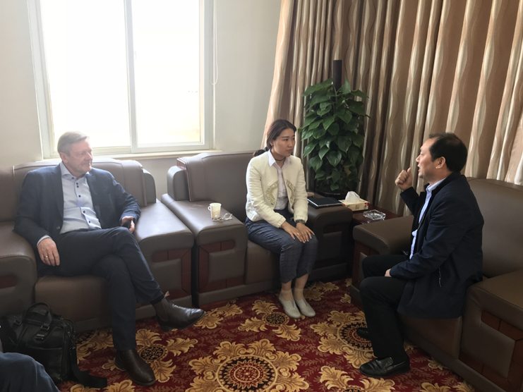4月25日,投資公司董事長、黨委書記李國文在三樓接待室熱情會見連云港北歐農莊食品公司CEO Grep一行,雙方就生豬銷售以及其他合作事宜前進行初步交流。副總經理許太東陪同會見和座談。