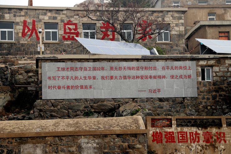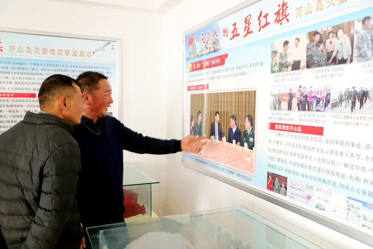 上午8點(diǎn),在發(fā)動(dòng)機(jī)巨大的轟鳴聲中,漁船緩緩駛離港口。近一個(gè)小時(shí)的顛簸,開(kāi)山島出現(xiàn)在了視野里,由小到大,逐漸清晰。簡(jiǎn)易碼頭上,守島民兵遠(yuǎn)遠(yuǎn)地沖著大家揮手,船上的人顧不上漁船的劇烈晃動(dòng),一個(gè)個(gè)扒著船沿?zé)崆榛貞?yīng)著,所有人的臉上都寫滿敬意和期待。漁船隨著海浪的節(jié)拍上下晃動(dòng)著,班組長(zhǎng)們登上碼頭,就緊緊握住守島民兵的手,對(duì)他們守島衛(wèi)國(guó),無(wú)怨無(wú)悔堅(jiān)守和付出的愛(ài)國(guó)奉獻(xiàn)精神表示欽佩。班組長(zhǎng)們跟隨著守島民兵沿著王繼才夫婦他們當(dāng)年的巡邏路線,拾級(jí)而上,大家一邊感受巡島爬山的辛苦,一邊聆聽(tīng)著守島民兵講解王繼才夫婦32年守島的艱難困苦和生離死別。