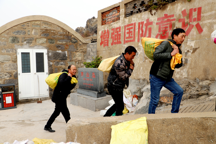 起來(lái),不愿做奴隸的人們……”在開(kāi)山島頂小廣場(chǎng)上,大家整齊列隊(duì)、唱響國(guó)歌、注目敬禮。鮮艷的五星紅旗迎風(fēng)飄揚(yáng),這個(gè)曾經(jīng)只屬于他們兩個(gè)人的升旗儀式,如今迎來(lái)了更多的追隨。守島民兵熱情地領(lǐng)著我們參觀面積僅0.013平方公里的開(kāi)山島,講述著這些年王繼才夫婦守島的故事,從一盞煤油燈、一個(gè)煤炭爐、一臺(tái)收音機(jī)到自己掏錢購(gòu)買的200多面國(guó)旗。沿著這一條條王繼才夫婦走過(guò)無(wú)數(shù)遍的巡島路,大家在看、在聽(tīng)、在思索。今天我們?cè)谶@里,就是要學(xué)習(xí)他們愛(ài)崗敬業(yè)、艱苦奮斗、勇于擔(dān)當(dāng)?shù)某绺呔瘛;顒?dòng)中,我們一線班組長(zhǎng)還在島上進(jìn)行了義務(wù)勞動(dòng),為守島民兵運(yùn)土種菜,有的兩人抬,有的上肩抗、也有的背的,他們不怕臟、不怕苦、不怕累,大家熱情高漲,以勞動(dòng)為榮,充分展現(xiàn)了我們灌西人的良好精神面貌。