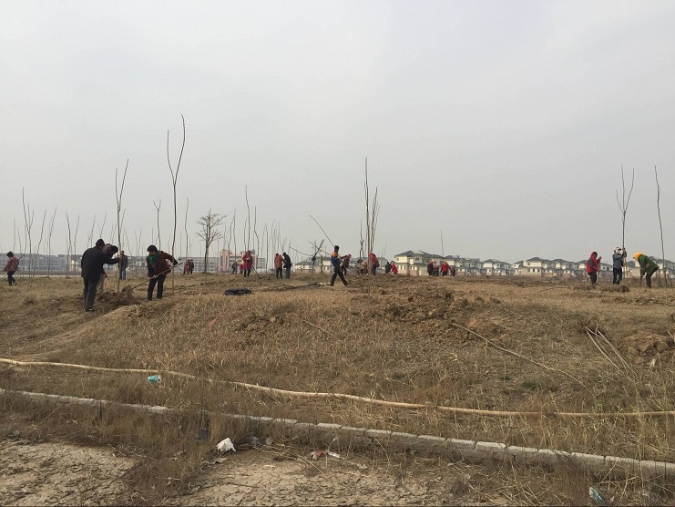 3月29日,南翼綠化公司100余名工人在大棚湖周邊開展植樹造林活動。