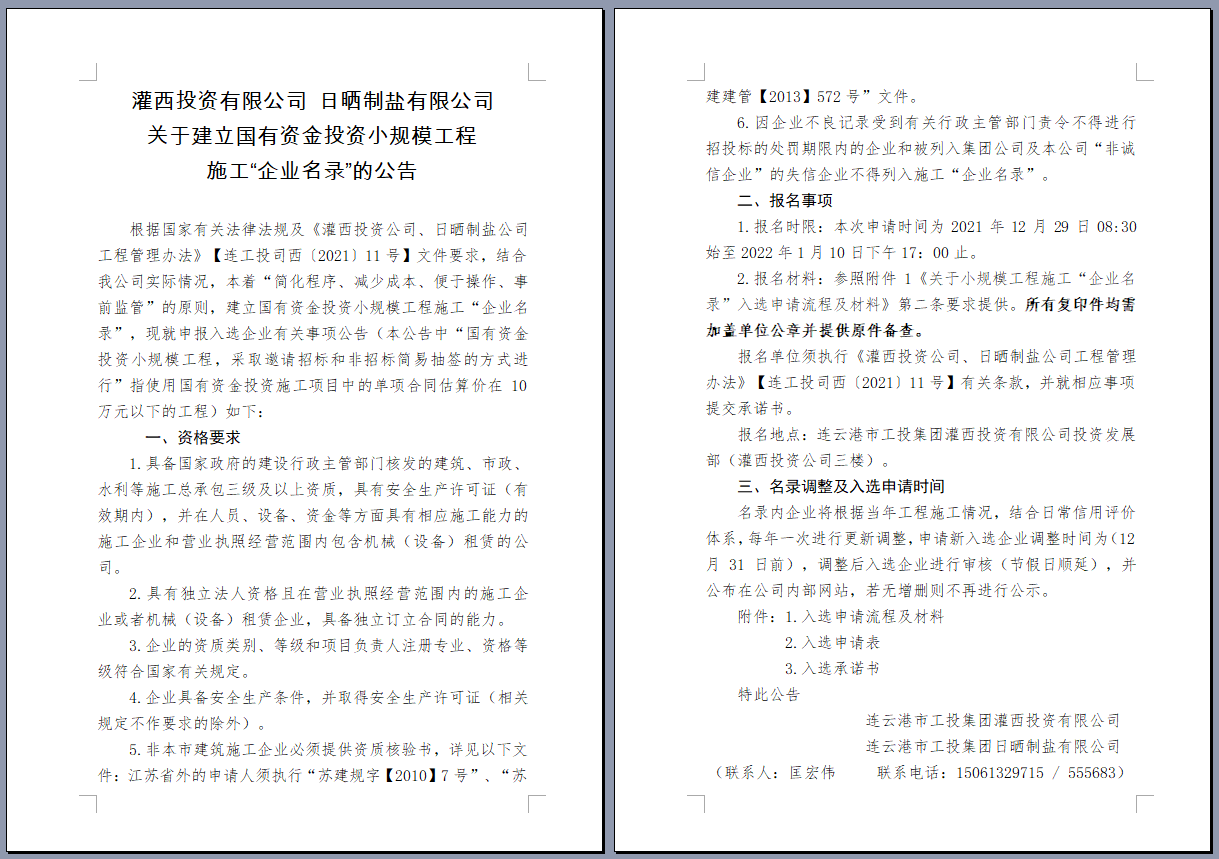 關(guān)于建立國(guó)有資金投資小規(guī)模工程 施工“企業(yè)名錄”的公告