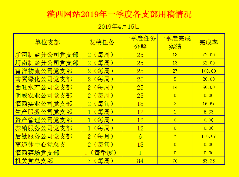灌西網站2019年一季度各支部用稿情況