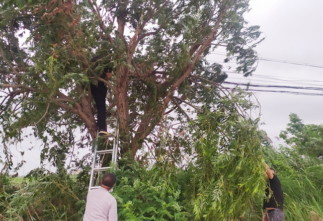 隨著第6號臺風“煙花”逐漸登陸,連日來,泰祥公司積極做好防臺風各項準備,針對場區主干道行道樹受臺風因素影響組織員工進行巡查樹木狀況,在做好安全工作的前提下,將斷枝、枯枝修剪清理,有效為安全提供保障。(趙新勇)