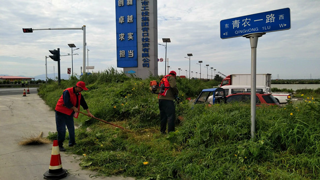 為了加大環境衛生整治力度,保障創文工作高效有序進行。8月16日泰祥公司全體黨員放棄休假日來到十六圩青口場標志牌處清理草坪柴草并清運出垃圾物,連日來持續的高溫,火辣辣太陽照得人睜不開眼。高溫下,大家不怕強烈的太陽光暴曬,主動拿起草坪機、鐮刀等工具進行割除柴草,經過數個小時奮戰將草坪內柴草、垃圾全部清除干凈,有力地促進創文達標工作順利進行。 (趙新勇)