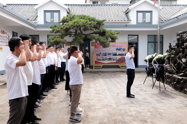 在紀念館內,黨員們在講解員的帶領下,學習贛榆歷史,了解十八勇士的英雄事跡,深刻體會先烈們在槍林彈雨中堅守共產黨人的初心和使命。在烈士雕塑前,全體黨員莊嚴肅穆,重溫入黨誓詞,回憶入黨初心,深情緬懷先烈。