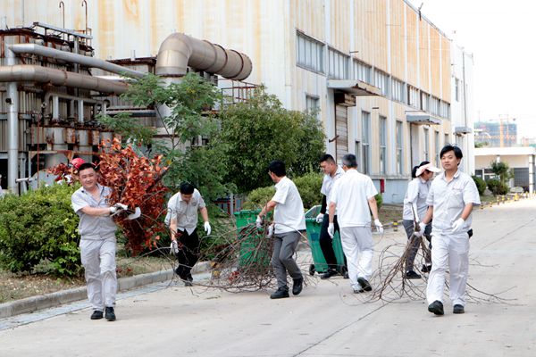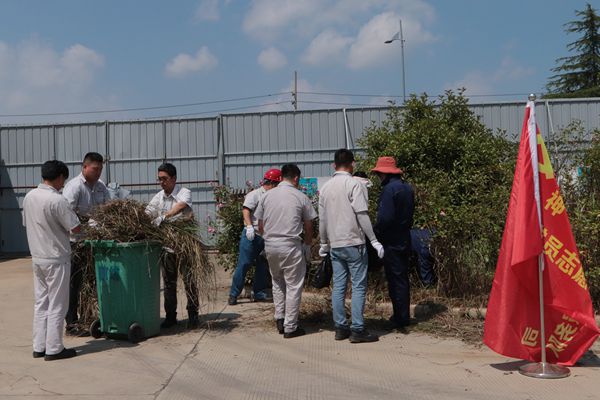 活動中,30余名黨員同志頂著烈日,他們不畏酷暑,揮汗如雨,有的在廠區(qū)的綠化帶里認(rèn)真清理雜草、樹枝和垃圾,有的負責(zé)運送垃圾,到處都是熱火朝天的勞動景象。