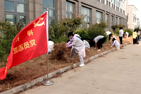 活動中,大家齊心協力,分工明確,各司其職,充分發揮不怕臟、不怕苦和不怕累的志愿者精神,認真清理辦公樓前雜草和衛生,以十二分的熱情全身心投入活動中。經過一個多小時的不懈努力,辦公樓前綠化帶及道路煥然一新。
