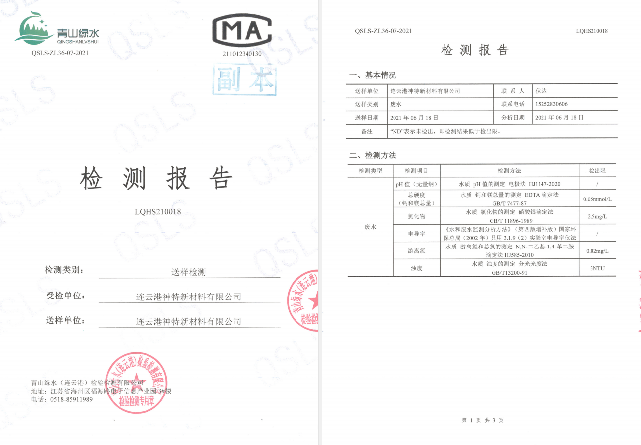 神特公司檢測報告公示
