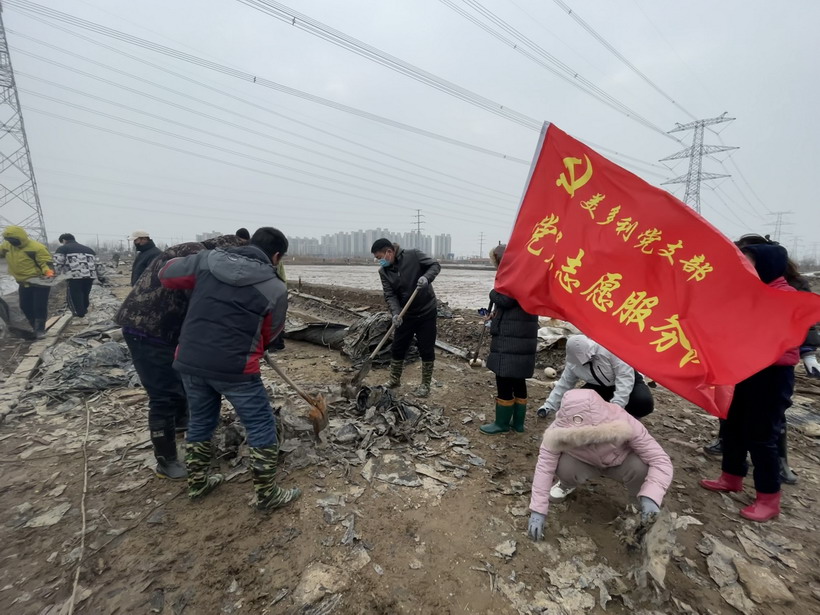 寒風(fēng)中,志愿者們忙碌在鹽灘上,充分發(fā)揚(yáng)不怕累、不怕臟的精神,對(duì)附近區(qū)域的垃圾、雜物進(jìn)行清理。經(jīng)過一個(gè)下午的辛勤勞動(dòng),共清理廢棄的塑布、木板等雜物十余車,用行動(dòng)和汗水,扮靚了鹽場(chǎng)人的家園。