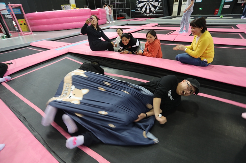 團建活動中,兩個隊伍的成員通過頭腦風(fēng)暴為自己的隊伍分別取名為“黛玉隊”和“寶釵隊”,分別由看起來比較柔軟實際也很柔軟的王茜和看起來很有力量,實際也很有力量的宋文靜帶領(lǐng)。大家喊出來鼓舞人心的口號,簡單的取名、口號環(huán)節(jié)起到了破冰的作用,瞬間拉近了隊員之間的距離。拓展訓(xùn)練中,青年們共同配合,迎難而上,大膽挑戰(zhàn)自我,“重走長征路”、“黨史60秒”、“四平八穩(wěn)”等緊張激烈的對決中,每個團隊齊心協(xié)力攻克了一個個最初認為不可能完成的項目,共同分享了成功的喜悅和挑戰(zhàn)的激情,充分地體會到了團隊信任、合作共贏、換位思考、永不言敗的重要意義,圓滿完成了拓展訓(xùn)練任務(wù)。
