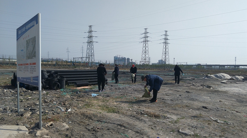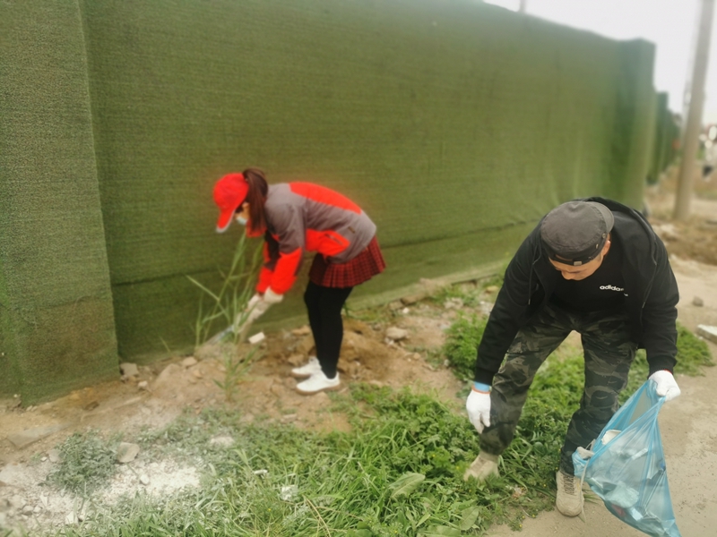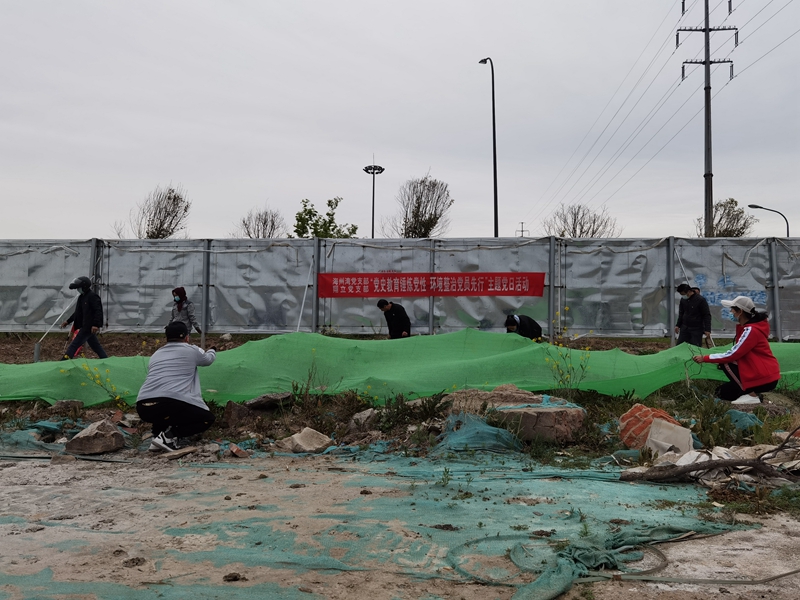 翔立分公司黨支部攜手海州灣公司黨支部對(duì)公司的車(chē)站小灘進(jìn)行環(huán)境整治,為裸露在外的土地進(jìn)行防塵網(wǎng)鋪設(shè)。