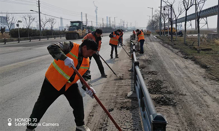 315日,該分公司近15余名黨員突擊隊員,在黨支部號召下,無視春光照曬、三人一組、兩個一對、揮動手中鐵銑,無懼泥土揚塵四起,清除蘇海路,港前卡口護欄下車輛拋灑泥土2000多米長,人工清掃護欄內石子30多處,車輛轉運20多車。黨員陳小軍、陳海彬等同志盡管手磨破了,仍然堅守道路最前沿,經過30余名隊員兩天持續奮戰,整潔靚麗的路面再次展現石化園區。