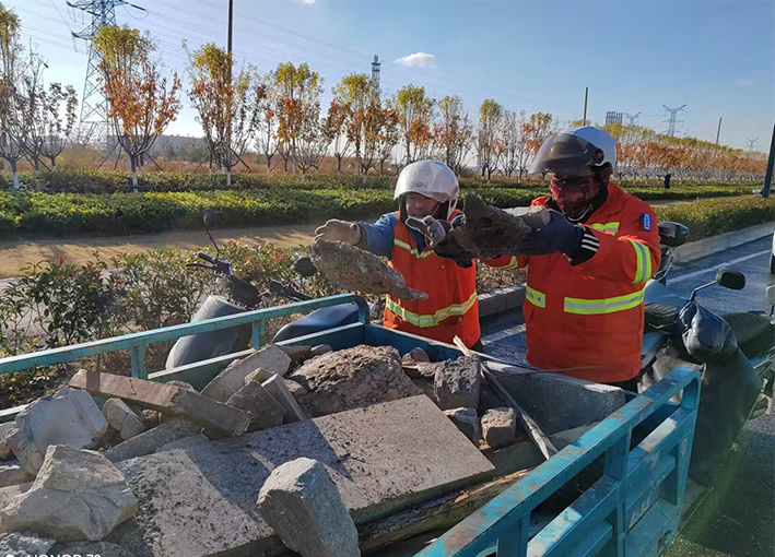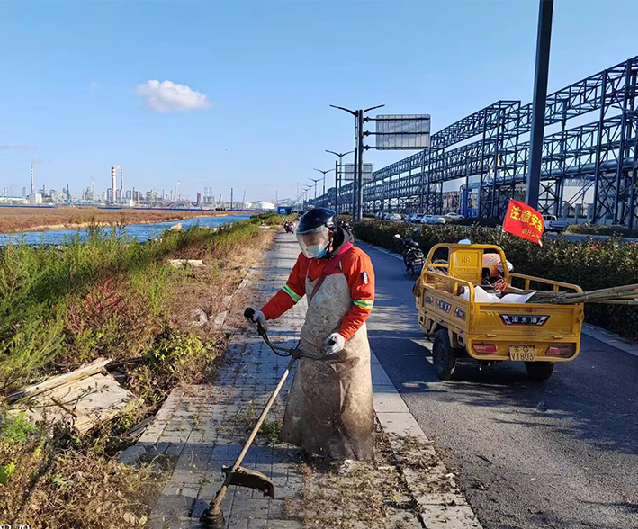 及時配合徐圩城建處理陬山路、石化七消防通道等路段施工產(chǎn)生動態(tài)各種垃圾20多車,再次轉(zhuǎn)運陬山路主道兩側(cè)綠化帶中石塊2000多斤。針對園區(qū)建設(shè)發(fā)展情況,序時推進石化五道,四道樣板路工程打造,組織人員突擊清理輔道雜草近1000余米長,撿拾管廊下各種垃圾300余袋。勞動現(xiàn)場,黨員生產(chǎn)骨干薛明柱、朱海勇等同志先鋒示范閃亮道路最前沿,用實際行動保障園區(qū)美麗環(huán)境。