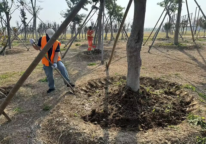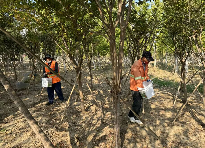 張圩河公園為綠化苗木施肥、澆水“解渴”