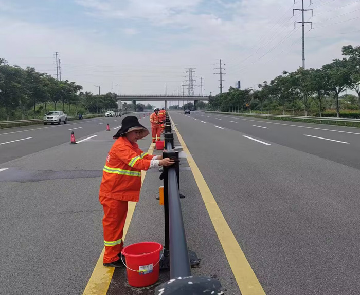 保潔分公司開展護欄清洗大比武